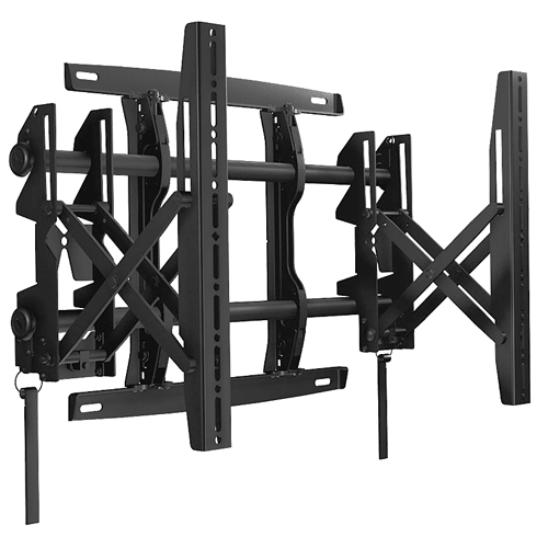 Este video wall es para cuatro pantallas que permite ubicar el video wall en el sitio preferido o moverlo entre aulas y oficinas.